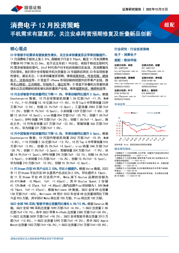 【国信证券】【20221212】消费电子12月投资策略:手机需求有望复苏,关注安卓阵营预期修复及折叠新品创新-23页