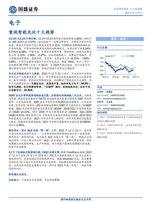 【国盛证券】【20221225】电子行业周报:重视智能光伏十大趋势-12页