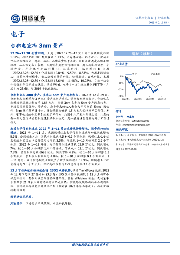 【国盛证券】【20230103】电子行业周报:台积电宣布3nm量产-10页