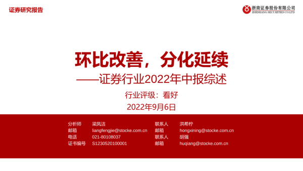 【浙商证券】【20220906】证券行业2022年中报综述:环比改善,分化延续-38页