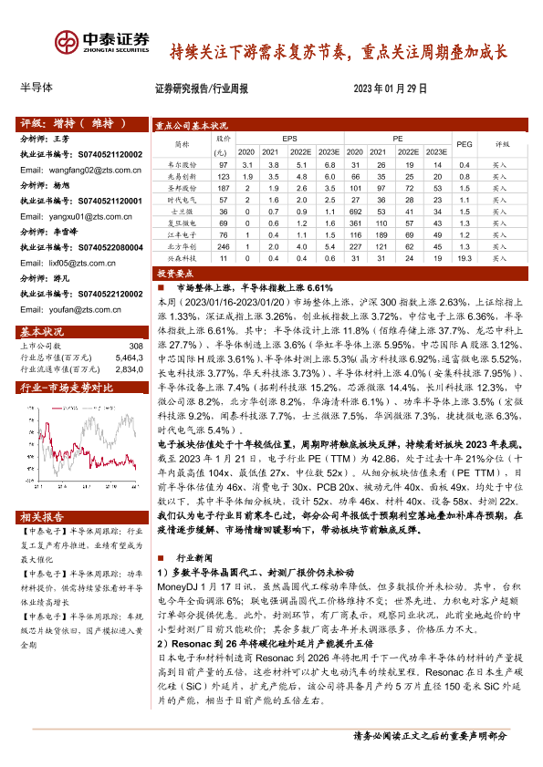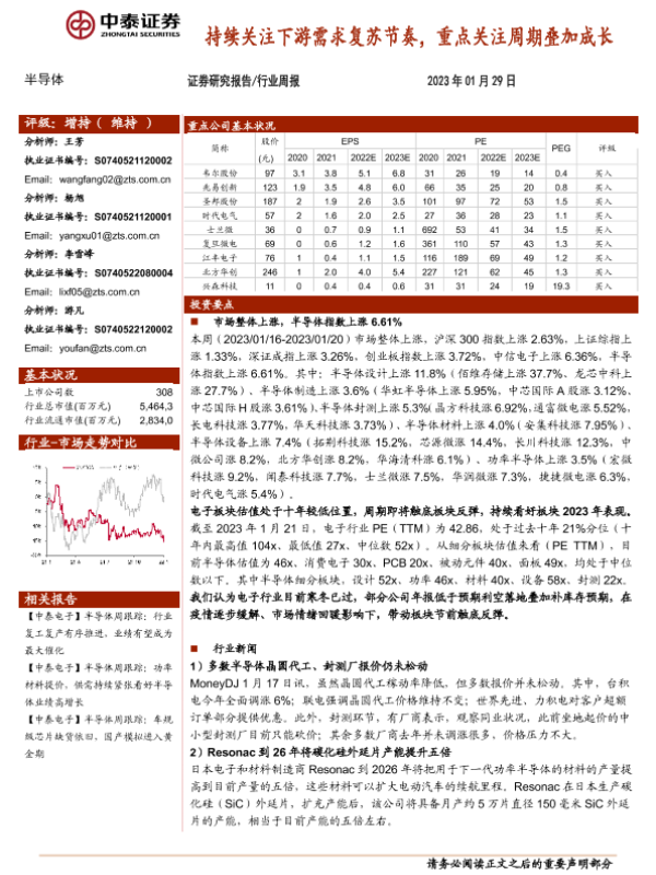 【中泰证券】【20230129】20230129-中泰证券-半导体行业周报:持续关注下游需求复苏节奏,重点关注周期叠加成长-16页