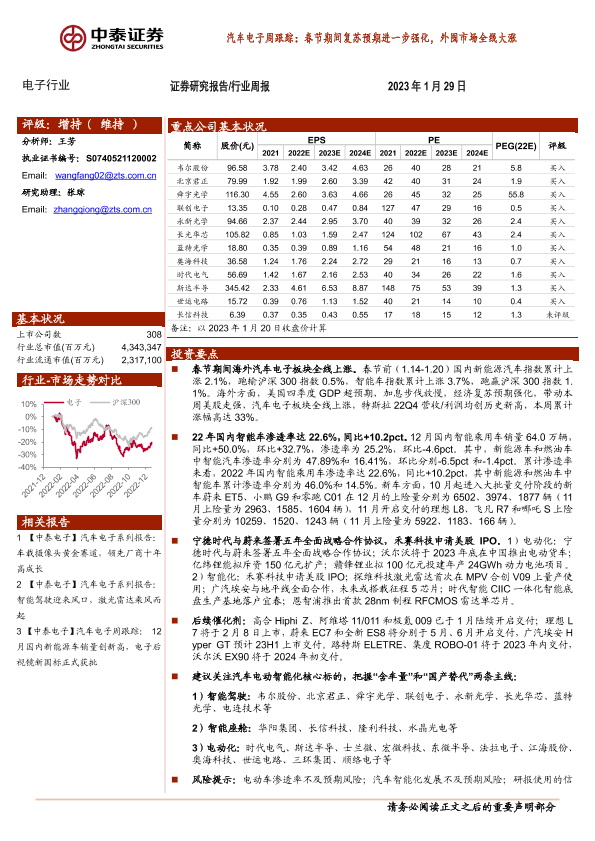 【中泰证券】【20230129】汽车电子周跟踪:春节期间复苏预期进一步强化,外围市场全线大涨-13页