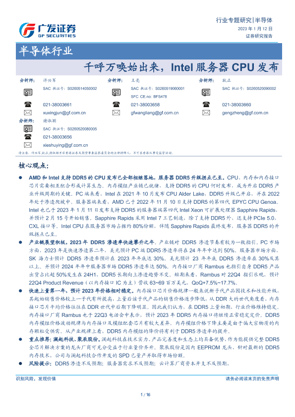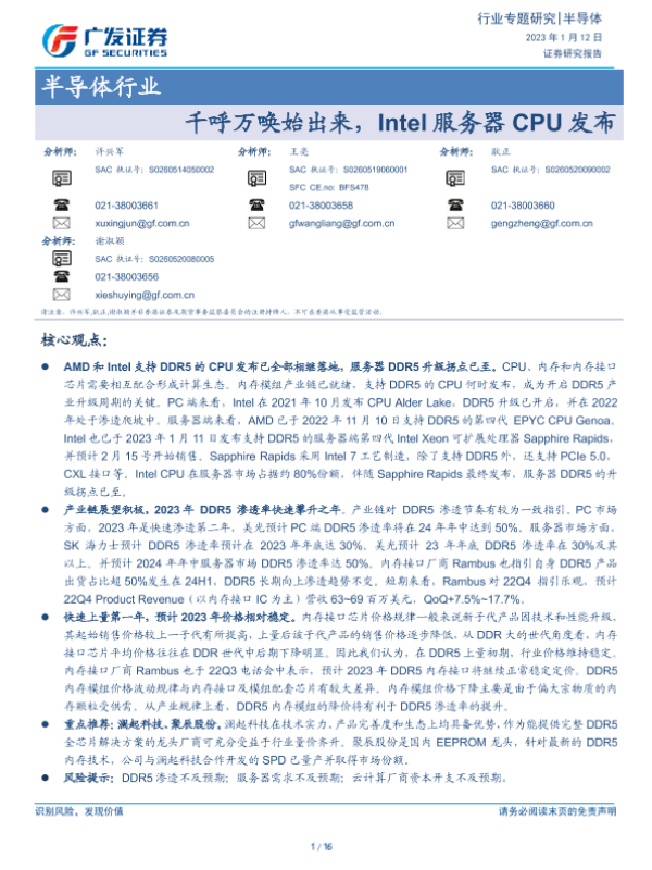 【广发证券】【20230112】千呼万唤始出来,Intel服务器CPU发布-16页