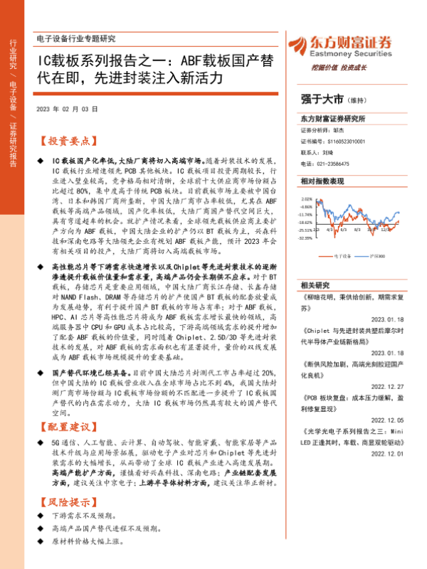 【东方财富证券】【20230203】IC载板系列报告之一:ABF载板国产替代在即,先进封装注入新活力-27页