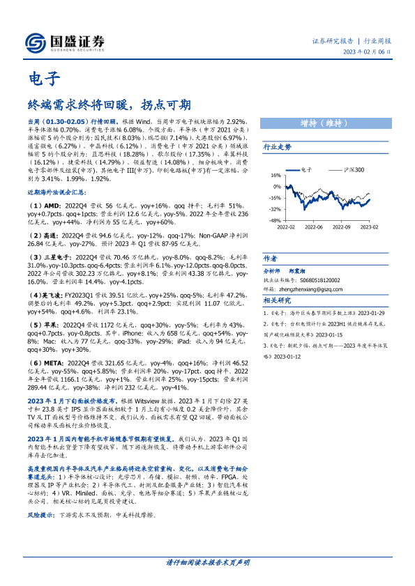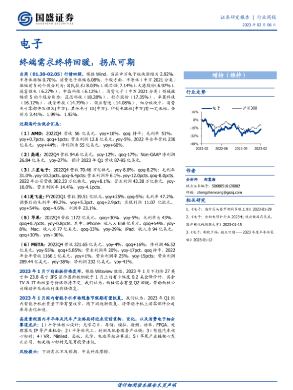 【国盛证券】【20230206】20230206-国盛证券-电子行业周报:终端需求终将回暖,拐点可期-21页