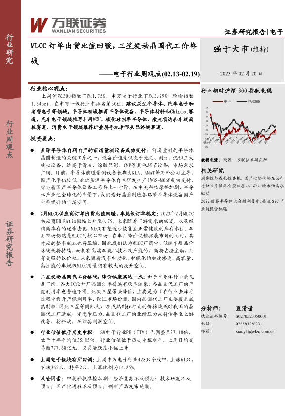 【万联证券】【20230220】20230220-万联证券-电子行业周观点:MLCC订单出货比值回暖,三星发动晶圆代工价格战-17页