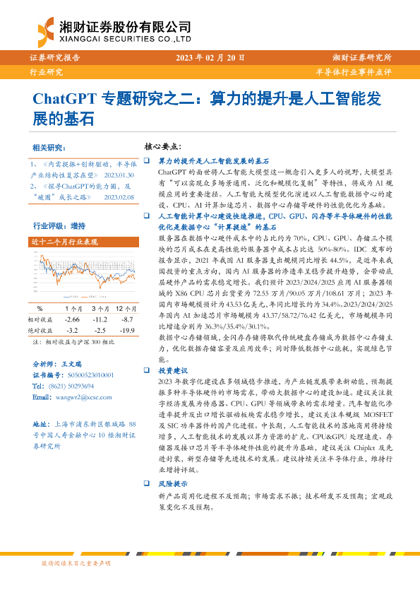 【湘财证券】【20230220】ChatGPT专题研究之二:算力的提升是人工智能发展的基石-10页
