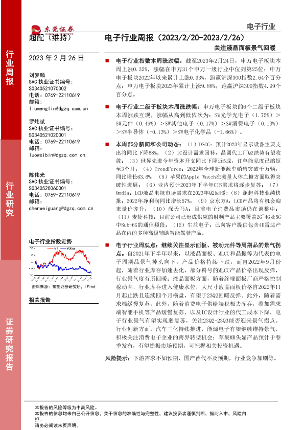 【东莞证券】【20230226】20230226-东莞证券-电子行业周报:关注液晶面板景气回暖-11页
