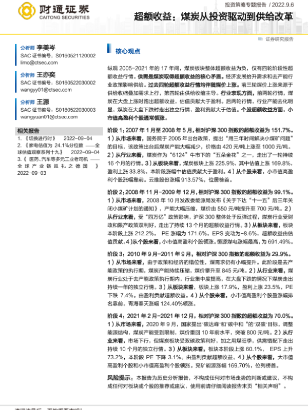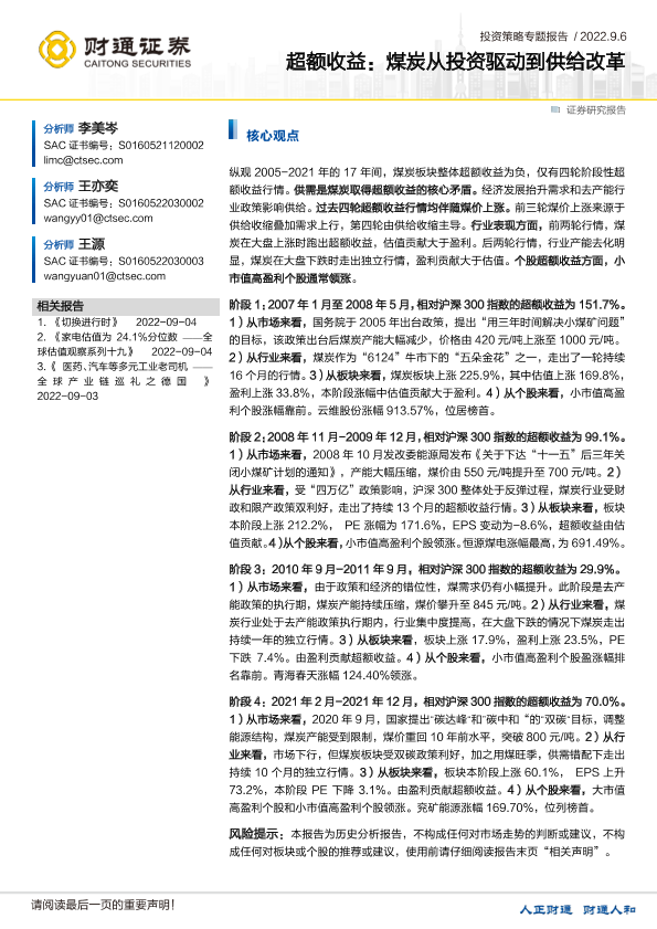 【财通证券】【20220906】超额收益:煤炭从投资驱动到供给改革-35页