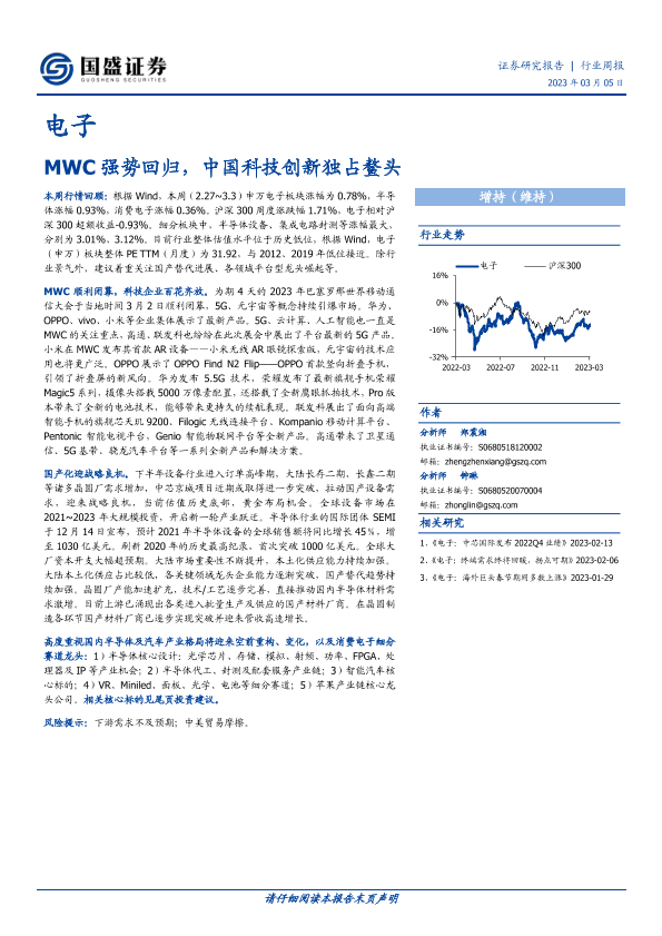 【国盛证券】【20230305】20230305-国盛证券-电子行业周报:MWC强势回归,中国科技创新独占鳌头-15页