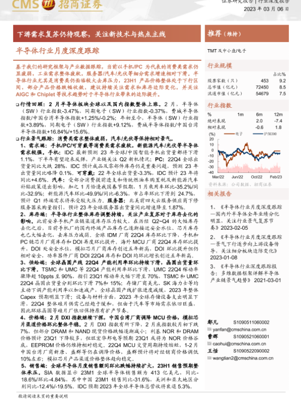 【海通证券】【20230306】20230306-招商证券-半导体行业月度深度跟踪:下游需求复苏仍待观察,关注新技术与热点主线-74页