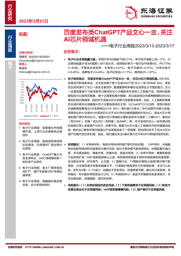 【东海证券】【20230321】20230321-东海证券-电子行业周报:百度发布类ChatGPT产品文心一言,关注AI芯片领域机遇-13页