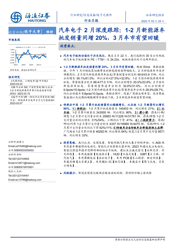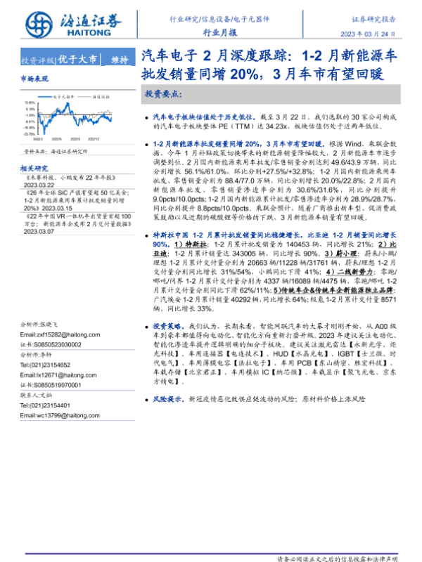 【海通证券】【20230324】汽车电子2月深度跟踪:1-2月新能源车批发销量同增20%,3月车市有望回暖-12页