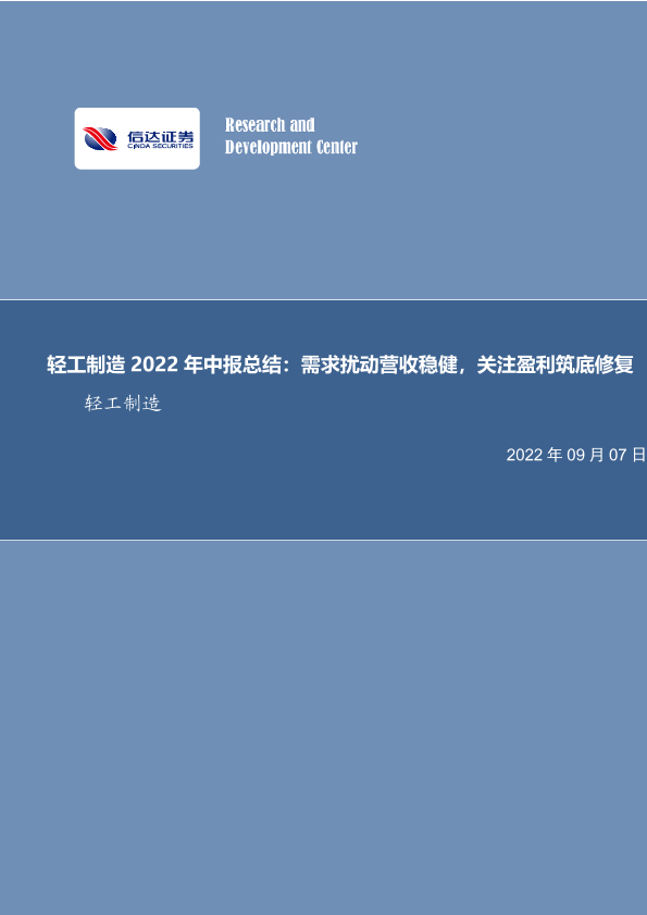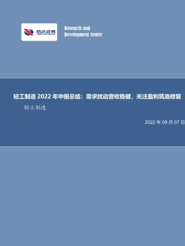 【信达证券】【20220907】轻工制造行业2022年中报总结:需求扰动营收稳健,关注盈利筑底修复-34页