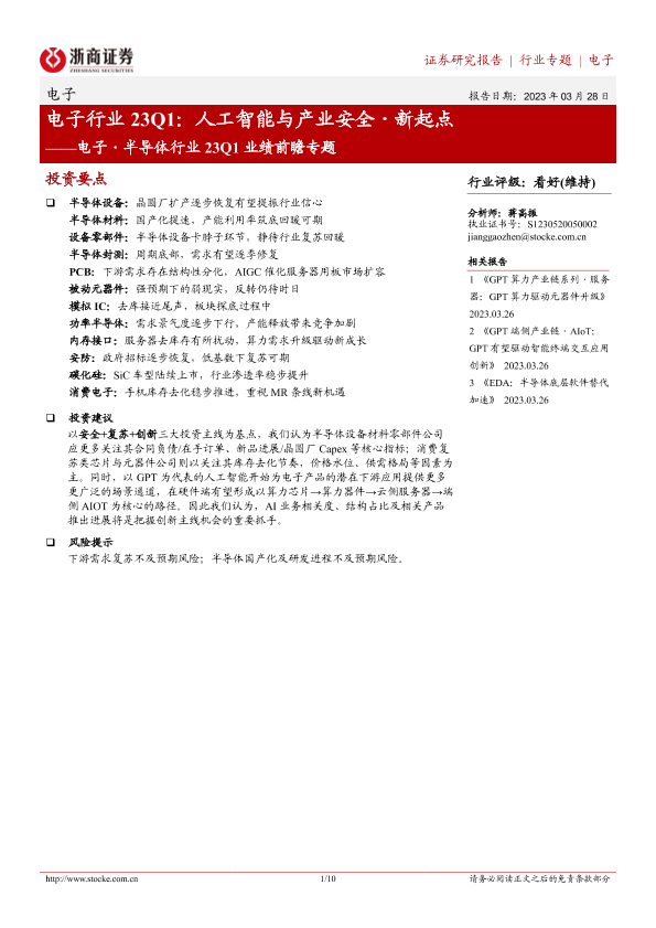 【浙商证券】【20230328】电子行业23Q1:人工智能与产业安全·新起点-10页