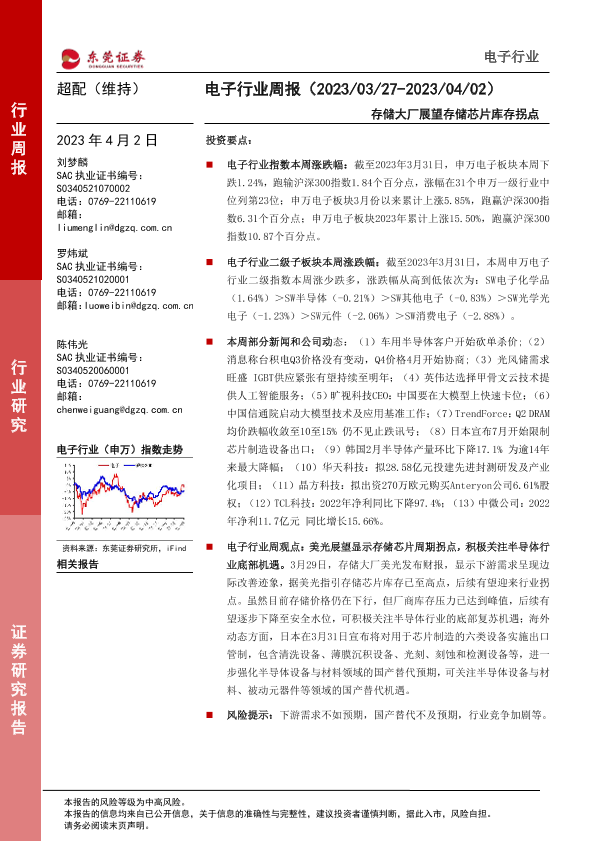 【东莞证券】【20230402】20230402-东莞证券-电子行业周报:存储大厂展望存储芯片库存拐点-12页