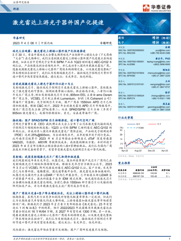 【华泰证券】【20230408】电子专题研究:激光雷达上游光子器件国产化提速-10页