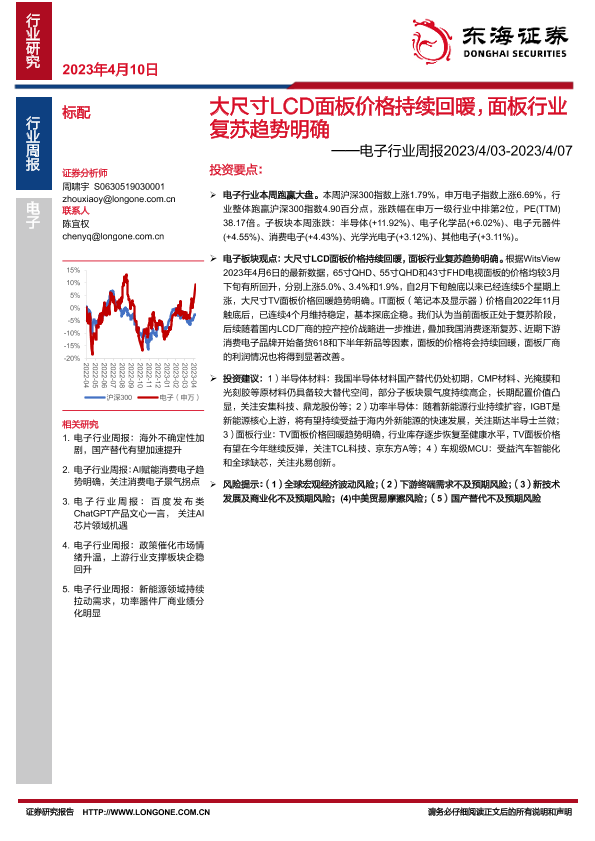 【东海证券】【20230410】20230410-东海证券-电子行业周报:大尺寸LCD面板价格持续回暖,面板行业复苏趋势明确-13页