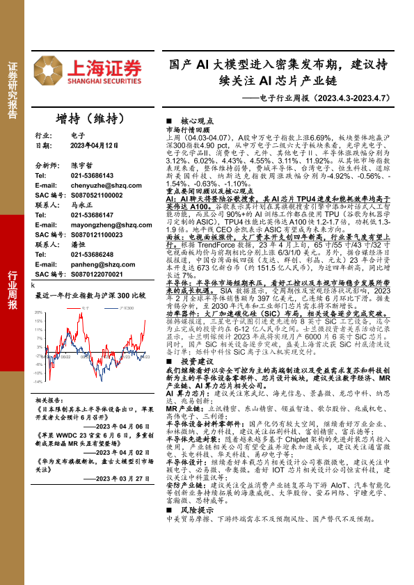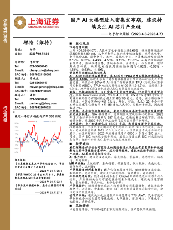 【上海证券】【20230412】电子行业周报:国产AI大模型进入密集发布期,建议持续关注AI芯片产业链-11页