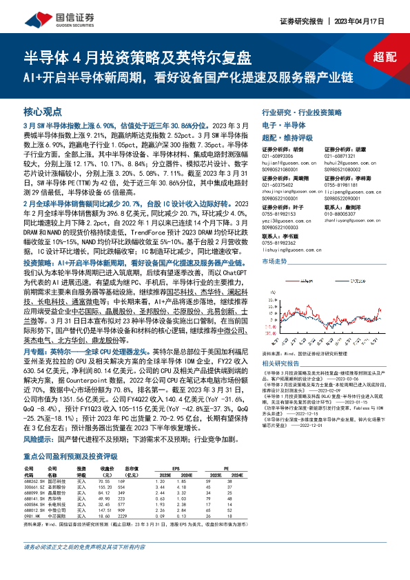 【国信证券】【20230417】20230417-国信证券-半导体4月投资策略及英特尔复盘:AI+开启半导体新周期,看好设备国产化提速及服务器产业链-40页