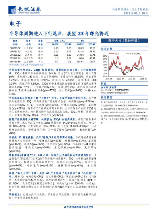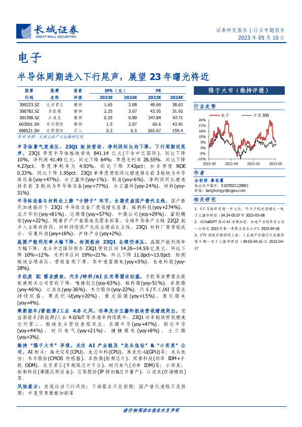 【长城证券】【20230510】电子行业专题报告:半导体周期进入下行尾声,展望23年曙光将近-13页