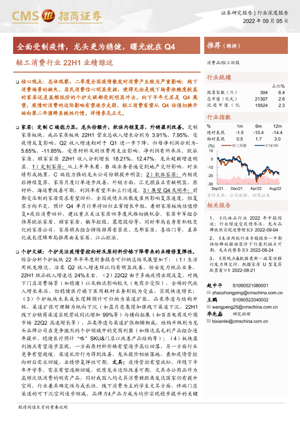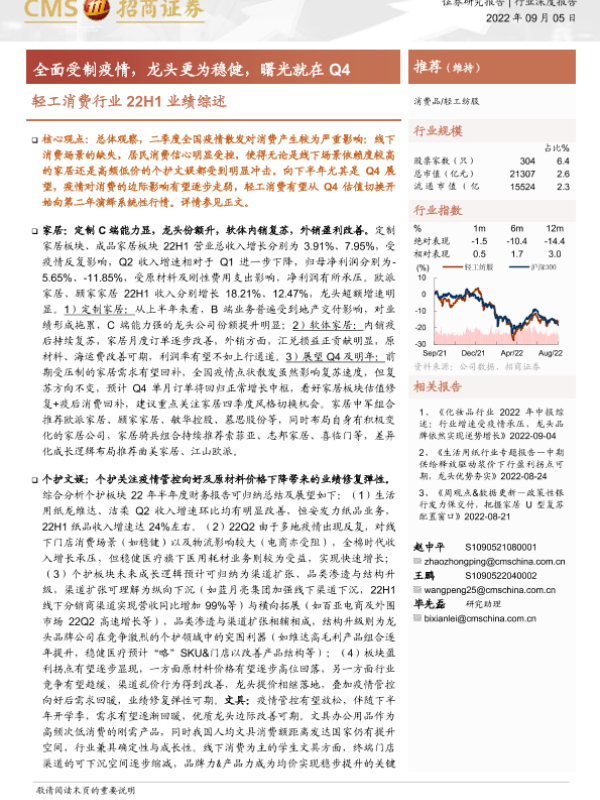【海通证券】【20220905】轻工消费行业22H1业绩综述:全面受制疫情,龙头更为稳健,曙光就在Q4-32页