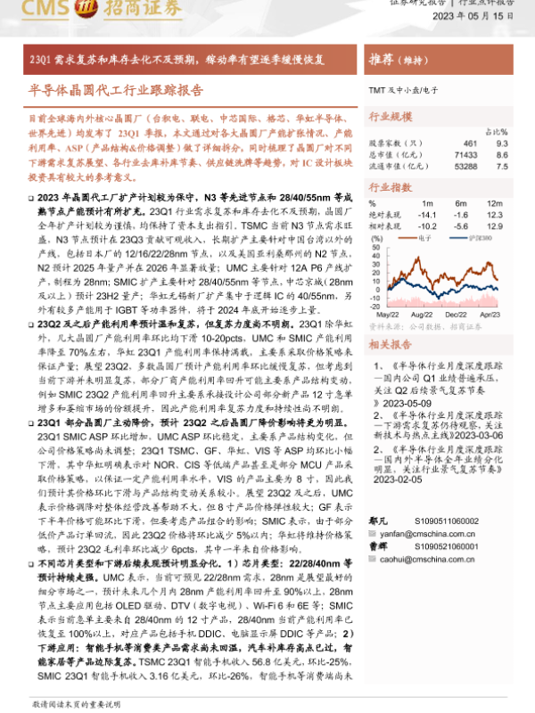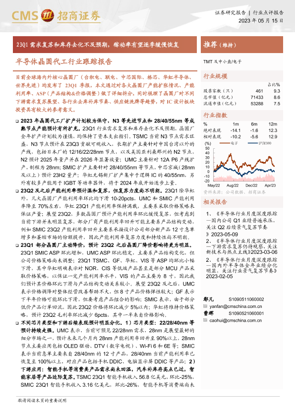 【海通证券】【20230515】20230515-招商证券-半导体晶圆代工行业跟踪报告:23Q1需求复苏和库存去化不及预期,稼动率有望逐季缓慢恢复-13页
