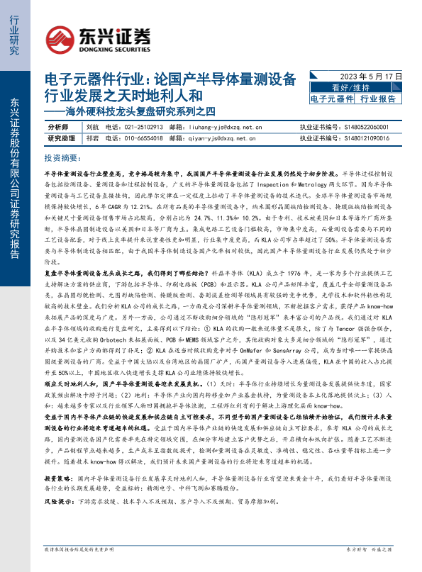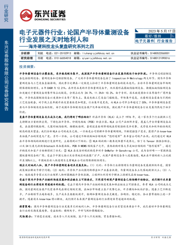 【东兴证券】【20230517】论国产半导体量测设备行业发展之天时地利人和-32页
