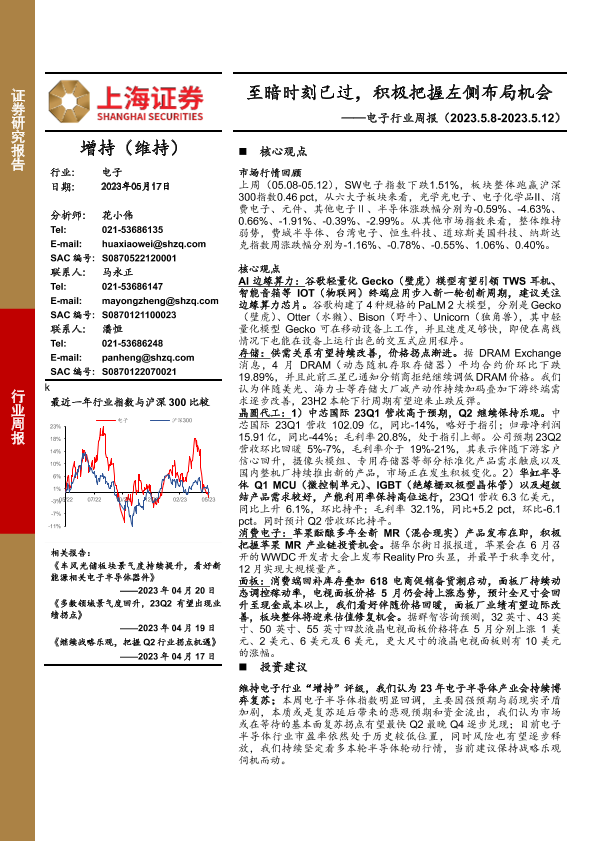 【上海证券】【20230517】20230517-上海证券-电子行业周报:至暗时刻已过,积极把握左侧布局机会-13页