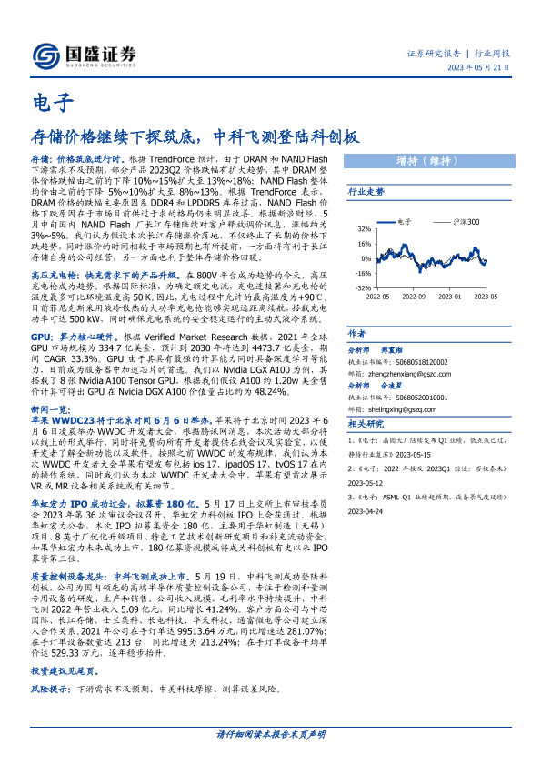 【国盛证券】【20230521】20230521-国盛证券-电子行业周报:存储价格继续下探筑底,中科飞测登陆科创板-21页