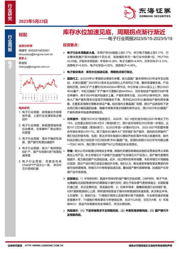 【东海证券】【20230523】电子行业周报:库存水位加速见底,周期拐点渐行渐近-12页
