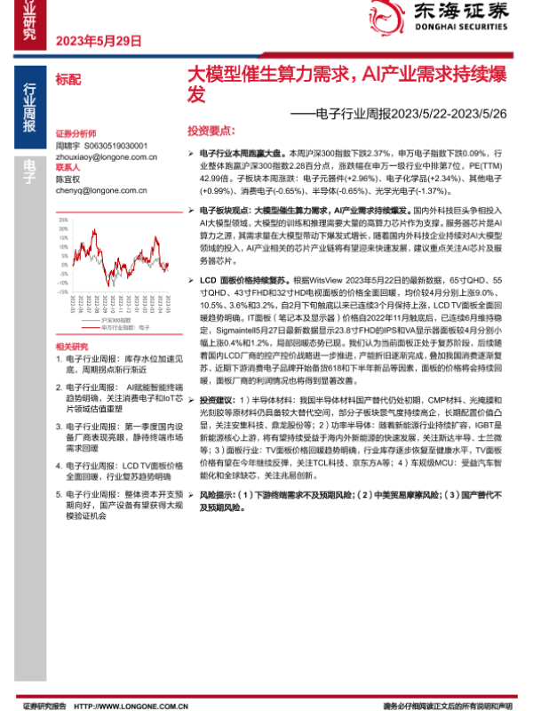 【东海证券】【20230529】20230529-东海证券-电子行业周报:大模型催生算力需求,AI产业需求持续爆发-12页