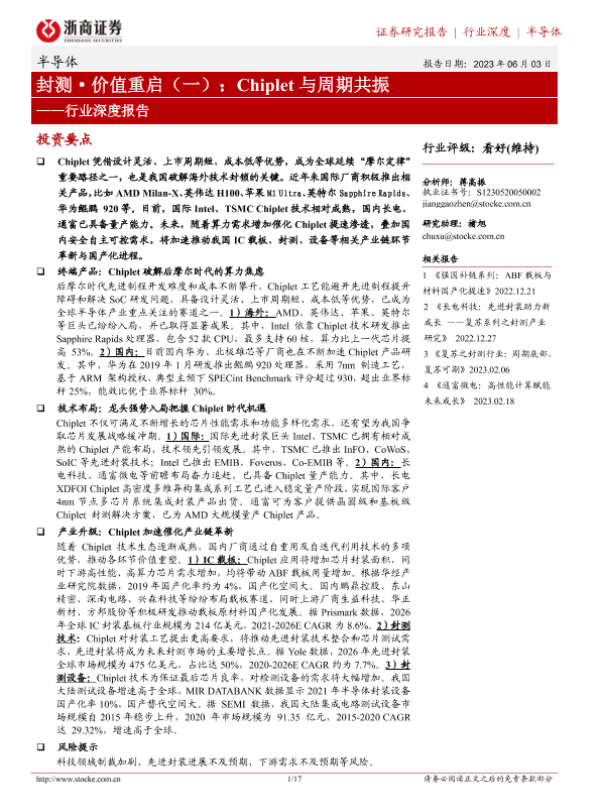 【浙商证券】【20230603】封测·价值重启(一):Chiplet与周期共振-17页