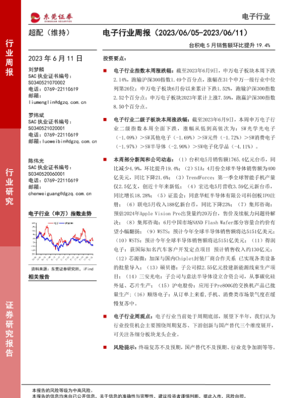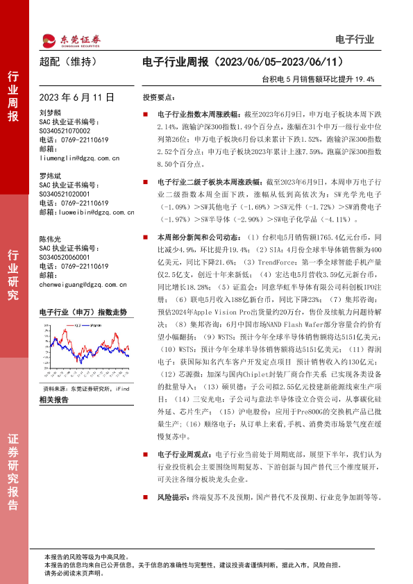 【东莞证券】【20230611】20230611-东莞证券-电子行业周报:台积电5月销售额环比提升19.4%-12页