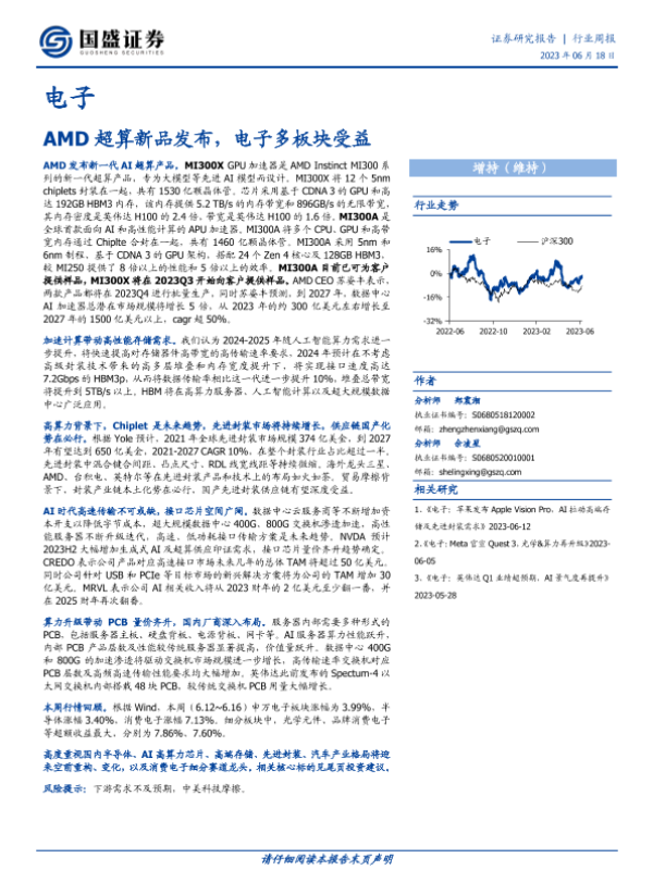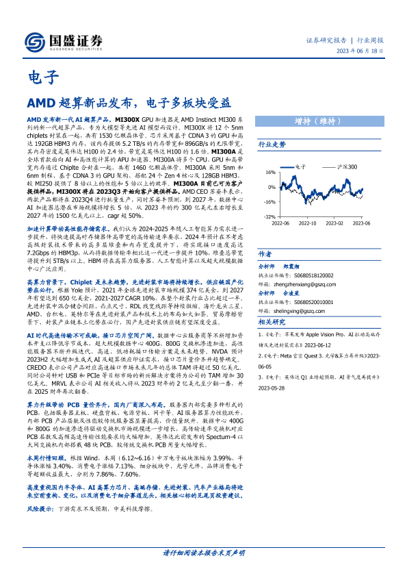 【国盛证券】【20230618】20230618-国盛证券-电子行业周报:AMD超算新品发布,电子多板块受益-21页