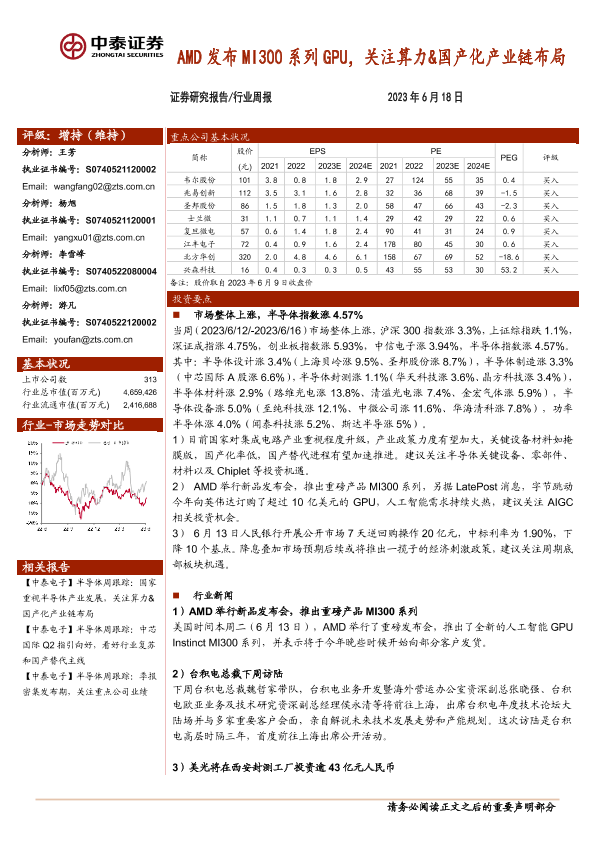 【中泰证券】【20230618】20230618-中泰证券-电子行业周报:AMD发布MI300系列GPU,关注算力&国产化产业链布局-13页