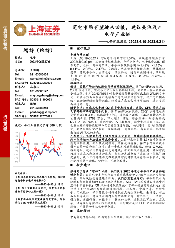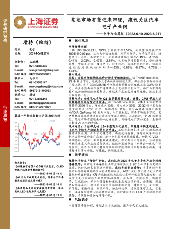 【上海证券】【20230627】20230627-上海证券-电子行业周报:笔电市场有望迎来回暖,建议关注汽车电子产业链-10页