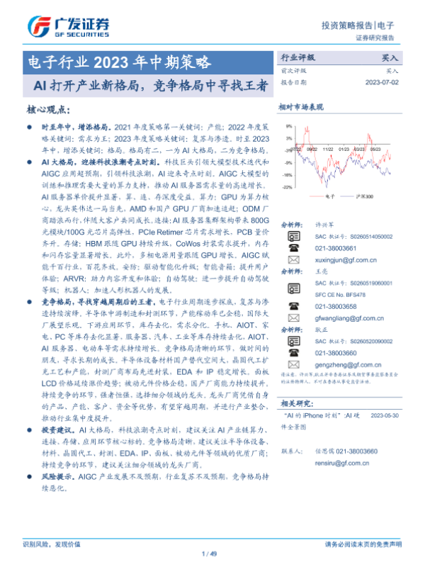 【广发证券】【20230702】电子行业2023年中期策略:AI打开产业新格局,竞争格局中寻找王者-49页