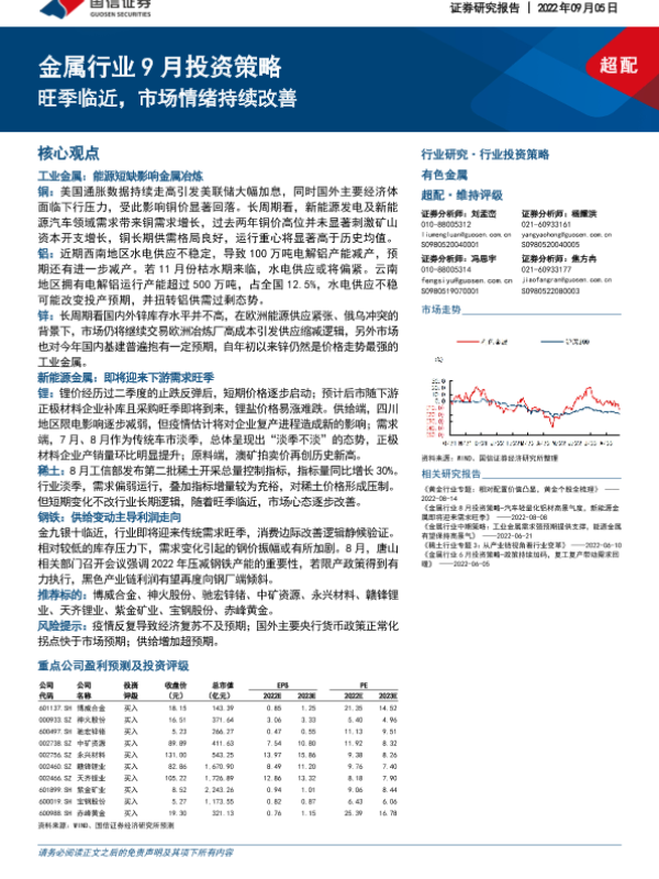 【国信证券】【20220905】金属行业9月投资策略:旺季临近,市场情绪持续改善-33页