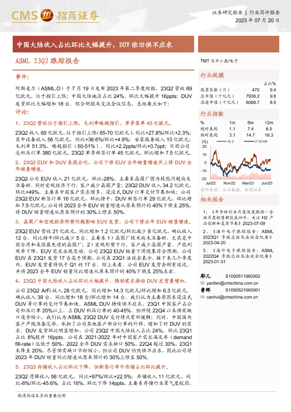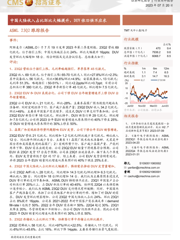 【海通证券】【20230720】电子:ASML23Q2跟踪报告-中国大陆收入占比环比大幅提升,DUV依旧供不应求-10页