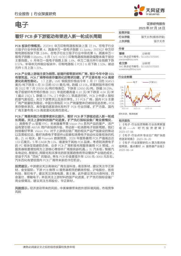 【天风证券】【20230718】20230718-天风证券-电子行业深度研究:看好PCB多下游驱动有望进入新一轮成长周期-18页