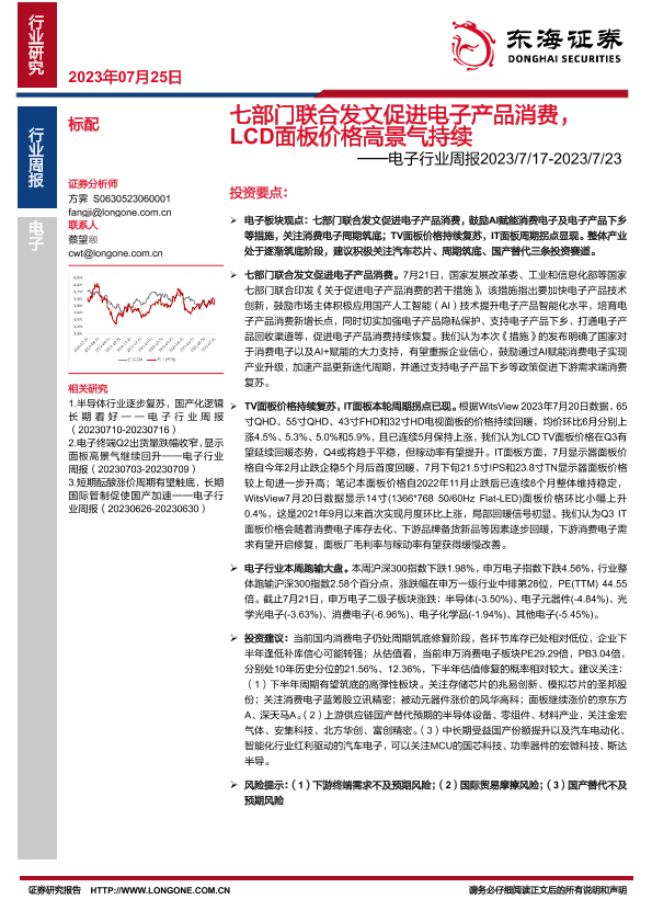 【东海证券】【20230725】七部门联合发文促进电子产品消费,LCD面板价格高景气持续-22页