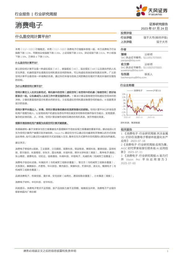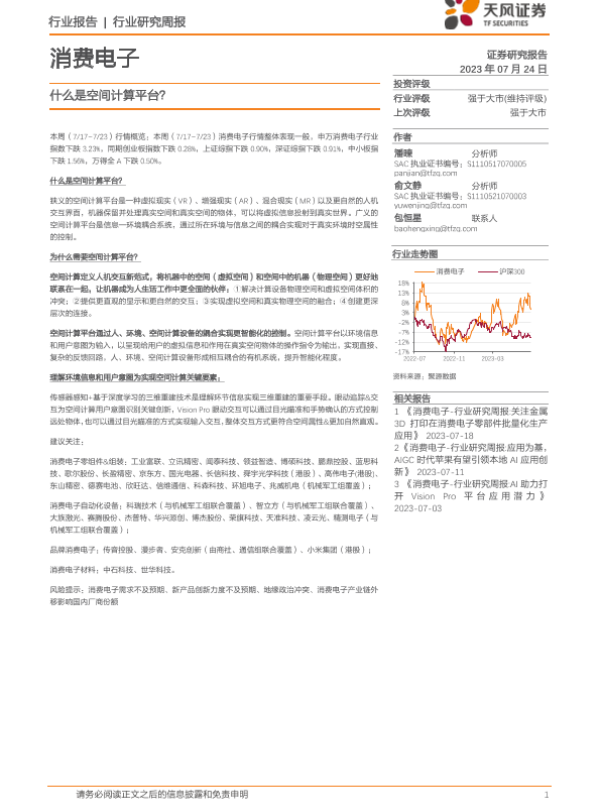 【天风证券】【20230724】消费电子行业研究周报:什么是空间计算平台?-19页