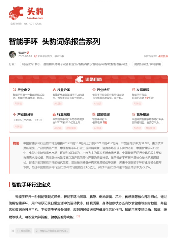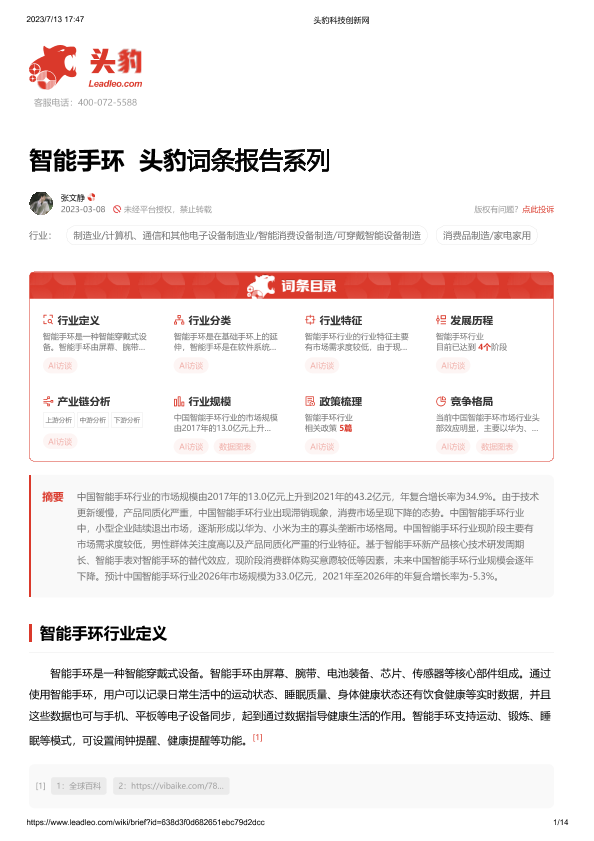 【头豹研究院】【20230731】智能手环 头豹词条报告系列-14页