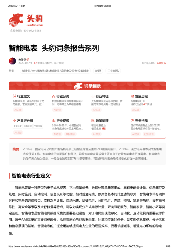 【头豹研究院】【20230721】智能电表 头豹词条报告系列-18页