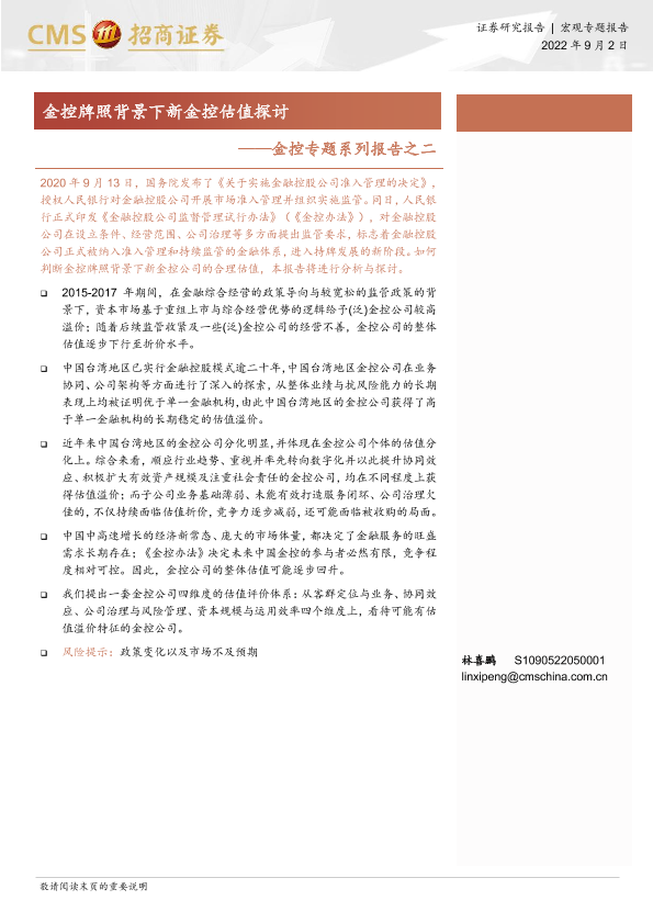 【海通证券】【20220902】金控专题系列报告之二:金控牌照背景下新金控估值探讨-17页