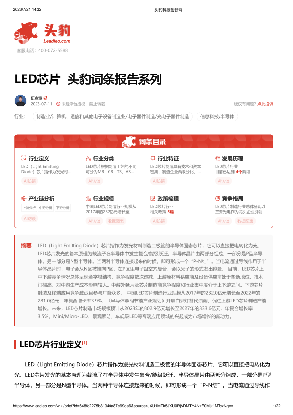【头豹研究院】【20230721】LED芯片 头豹词条报告系列-22页