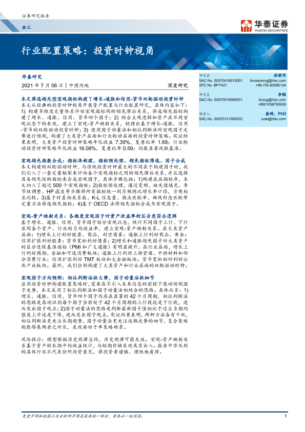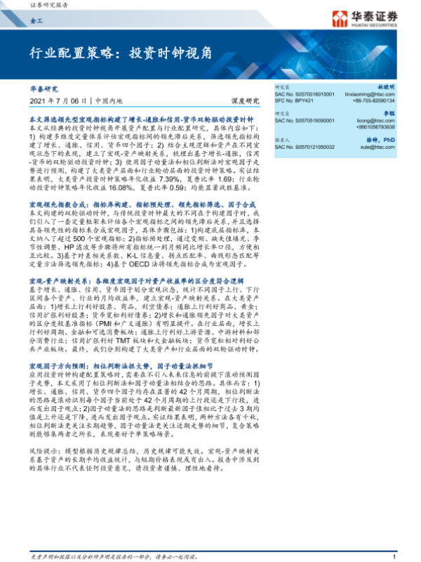 【华泰证券】【20210706】金工深度研究:行业配置策略,投资时钟视角-34页