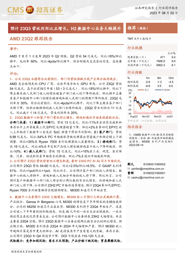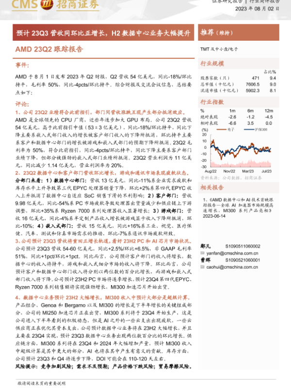 【海通证券】【20230802】AMD23Q2跟踪报告-预计23Q3营收同环比正增长,H2数据中心业务大幅提升-12页