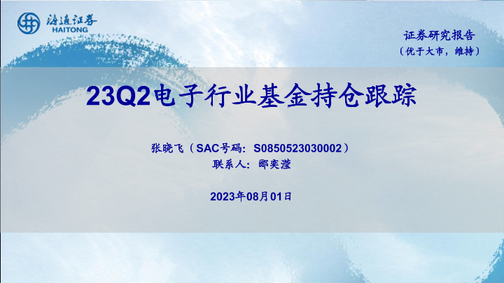 【海通证券】【20230801】23Q2电子行业基金持仓跟踪-16页